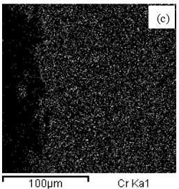 (a)電子像;(b)氧元素面分布;(c)鉻元素面分布;