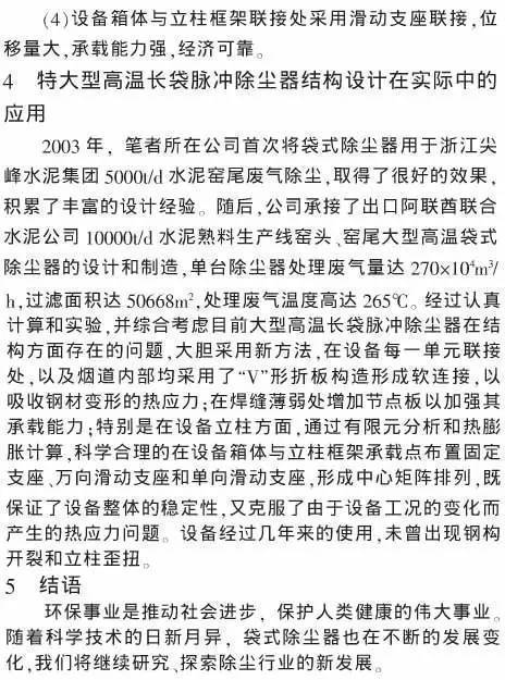 摘要:分析大型高溫袋式除塵器在結構方面存在的問題,提出設計的要點和技術措施,列舉實際應用的范例,供同行參考交流。