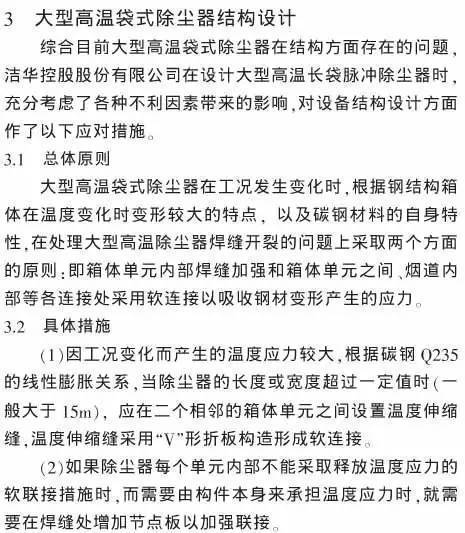 2大型高溫袋式除塵器在結構方面存在的問題